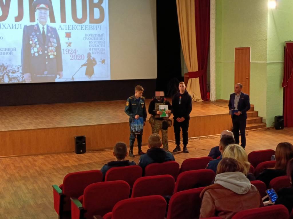 В Кинотеатре «Россия» прошло мероприятие посвящённое памяти Героя. Преподаватели и обучающиеся ОБПОУ «ОГТК» познакомились с подвигами Михаила Алексеевича и встретились с ветеранами боевых действий, председателем совета ветеранов войны, труда и Вооруженных сил Обоянского района, ветераном войны в Афганистане и на Северном Кавказе Владимиром Бердниковым, председателем общественной организации «Союз десантников Обояни» Владиславом Дмитриевым и Ветераном боевых действий, участником СВО на Украине, находящимся в отпуске нашим земляком, позывной «Рысь».