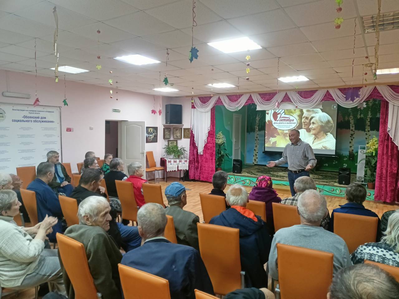 Ежегодно с 1-го по 10 октября проходит декада, посвящённая Дню пожилого человека. Традиционно в эти дни в адрес граждан старшего возраста звучат теплые и искренние поздравления. По доброй традиции сотрудники МБУК «Центр досуга и кино «Россия» в рамках акции «День добра и уважения» поздравили коллег, находящихся на заслуженном отдыхе и посетили жителей ОБУСОКО «Обоянский дом социального обслуживания». Вечерний просмотр кинофильма «Не надо печалиться» собрал в актовом зале любителей российского кино.
