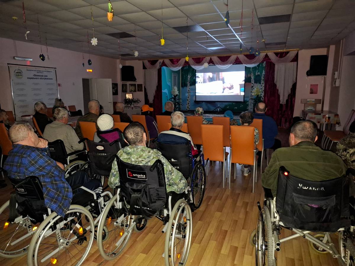 Вечерний просмотр кинофильма собрал в актовом зале проживающих ОБУСОКО "Обоянский дом социального обслуживания". Участники акции