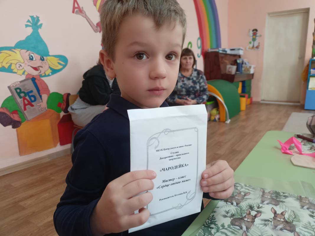 С целью бережного отношения к женщине, укрепления семьи, знания семейных ценностей и традиций в преддверии празднования Дня Матери руководитель студии «Чародейка» МБУК «Центр досуга и кино «Россия» провела мастер-класс «Свое сердце отдаю маме» в подготовительной группе МБДОУ «Детский сад №3» , в ходе которого ребята изготовили подарки для своих любимых мам. Валентина Васильевна увлекает ребят использованием нетрадиционных техник в изготовлении поделок, подробно рассказывает о способах выполнения, помогает и поддерживает. Не забывает Валентина Васильевна и о минутках отдыха. Ребята очень стараются порадовать своей работой педагога, а получившимся подарком любимых мамочек!
