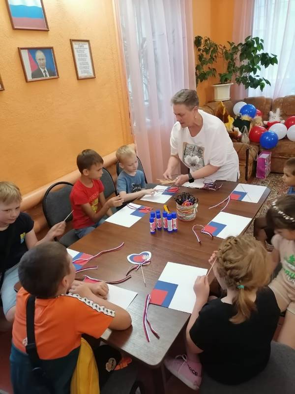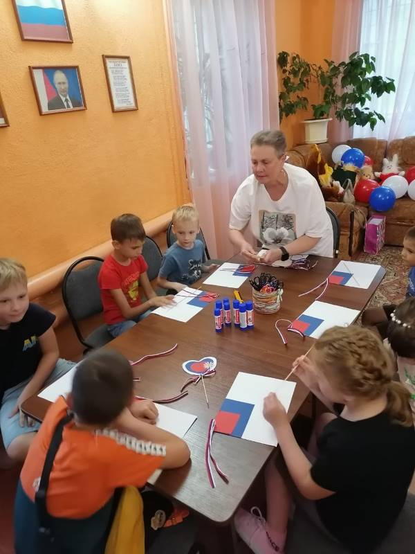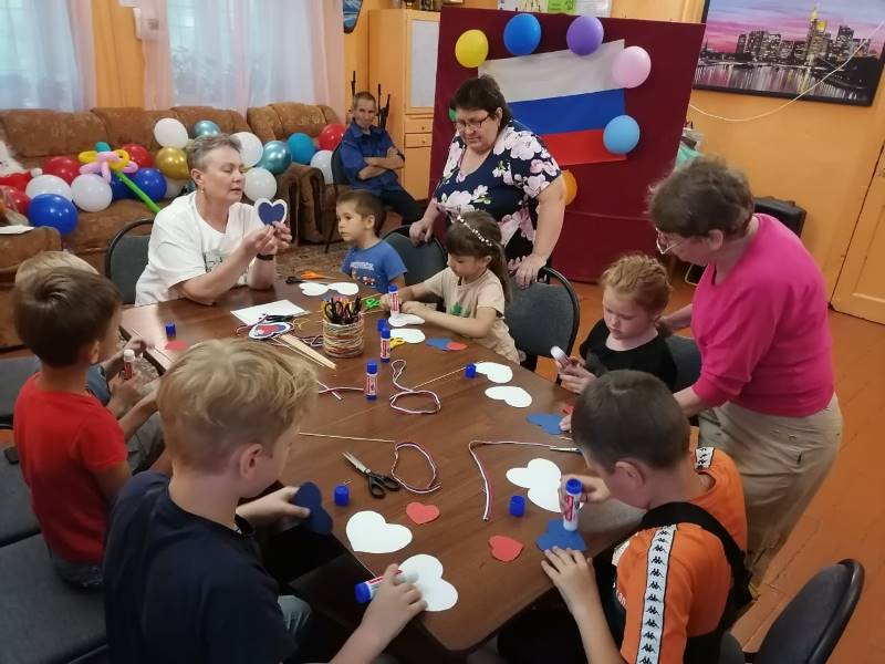 провели для детей мастер - класс на котором все дружно изготавливали "Сердечко - Триколор", цвета которого символизируют флаг нашей страны: