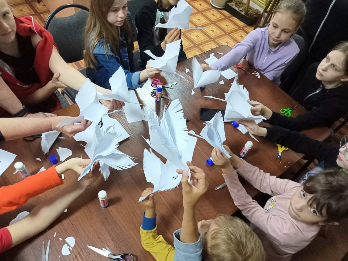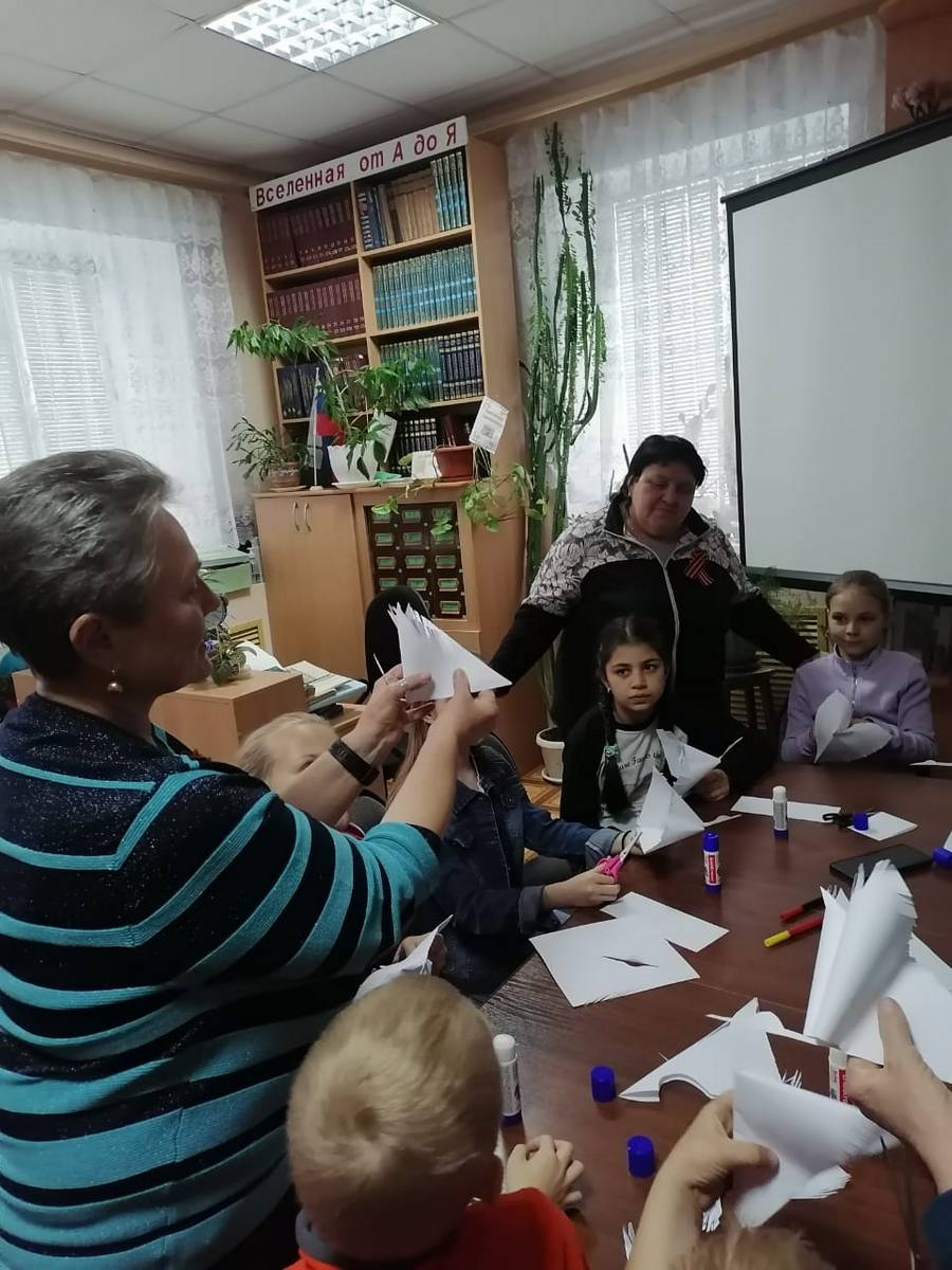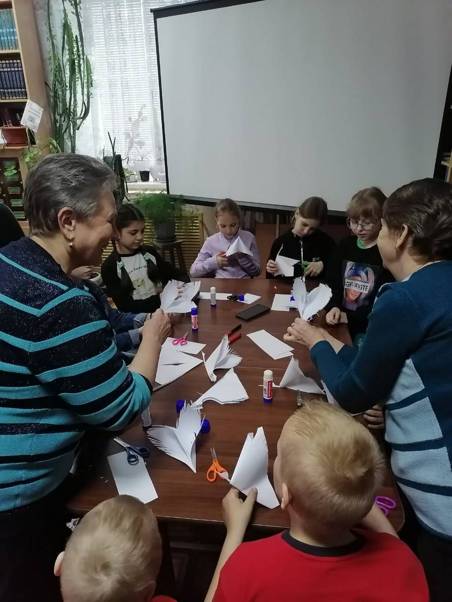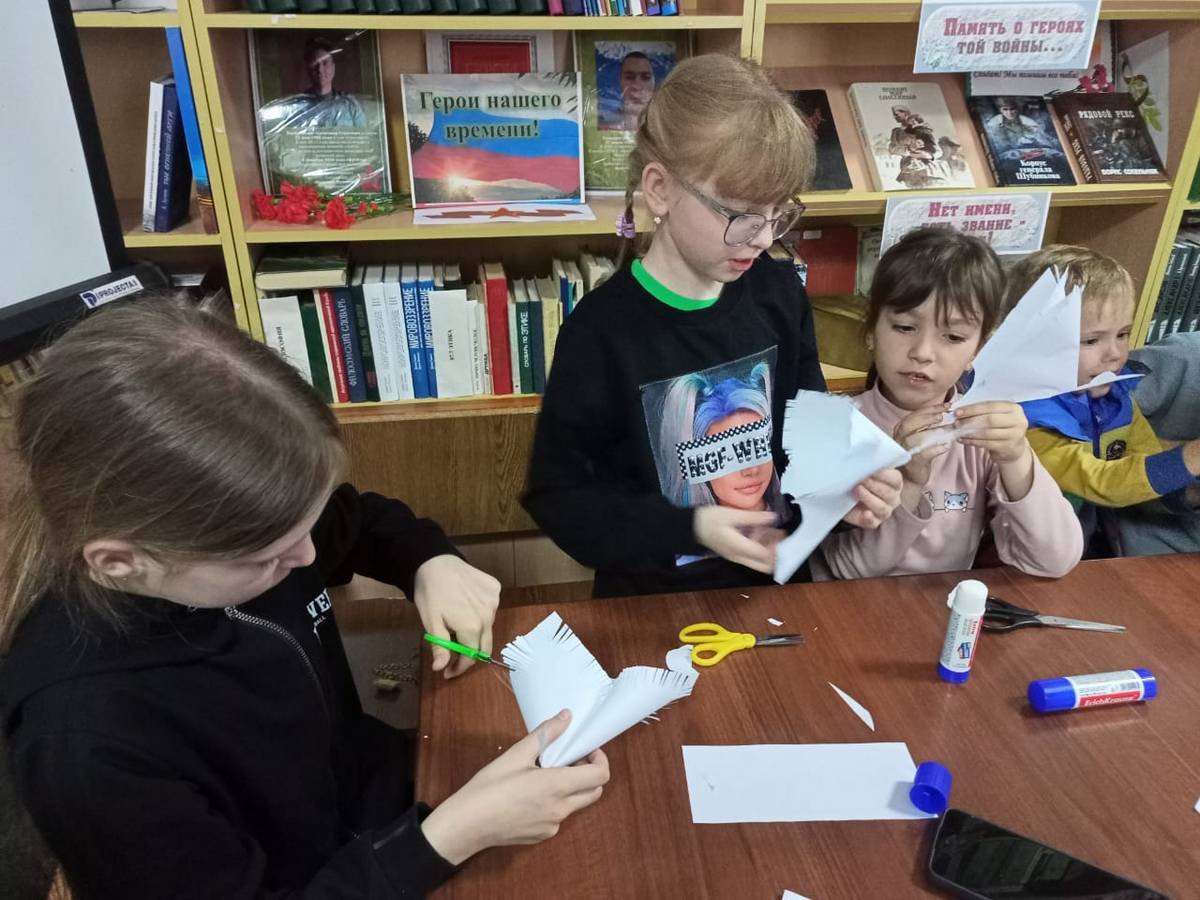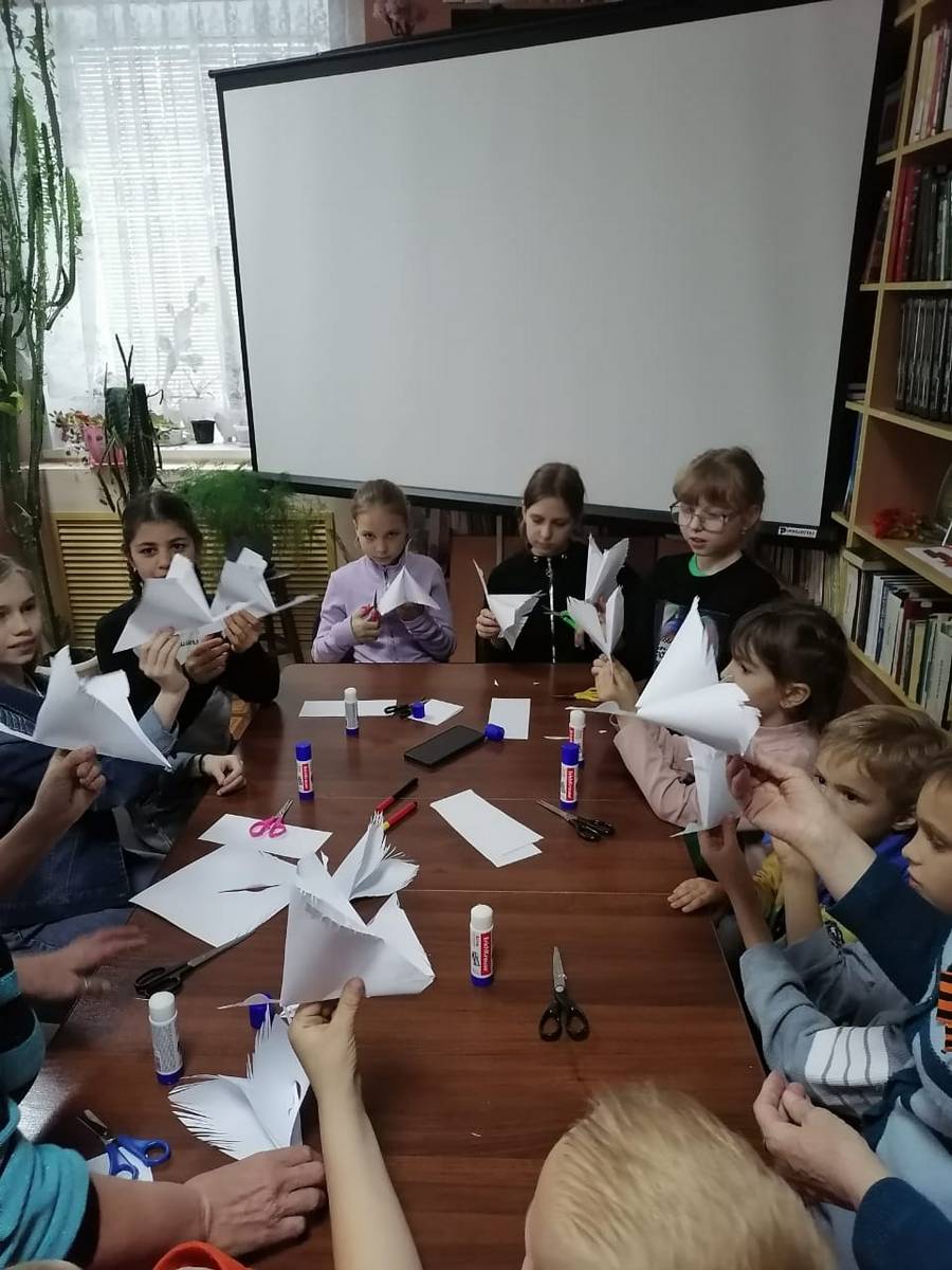 Под чутким руководством Козловой В.В. и работников СДК, дети старательно складывали бумагу, превращая ее в символ надежды и мира – белого журавля.