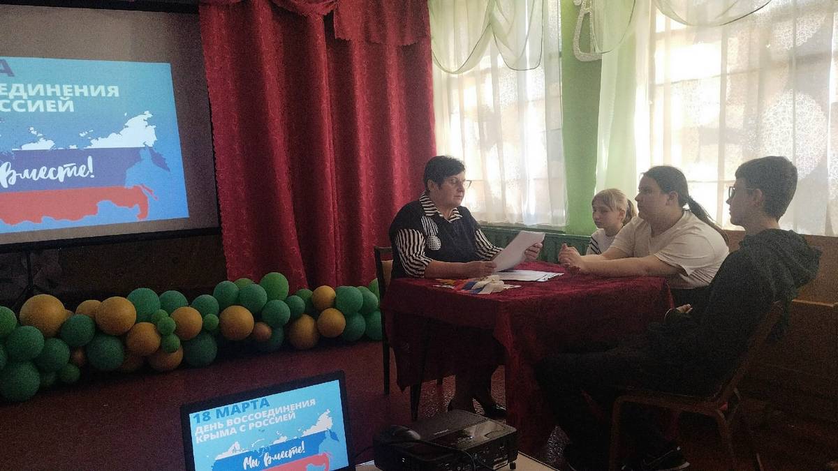 В честь Дня воссоединения Крыма с Россией на киноустановке Зоринского СДК прошло познавательное мероприятие для детей "Мы вместе!". Ребята познакомились с ключевыми событиями связанными с этой важной датой, а позже приняли участие в викторине - отвечали на вопросы об истории и географии Крыма.